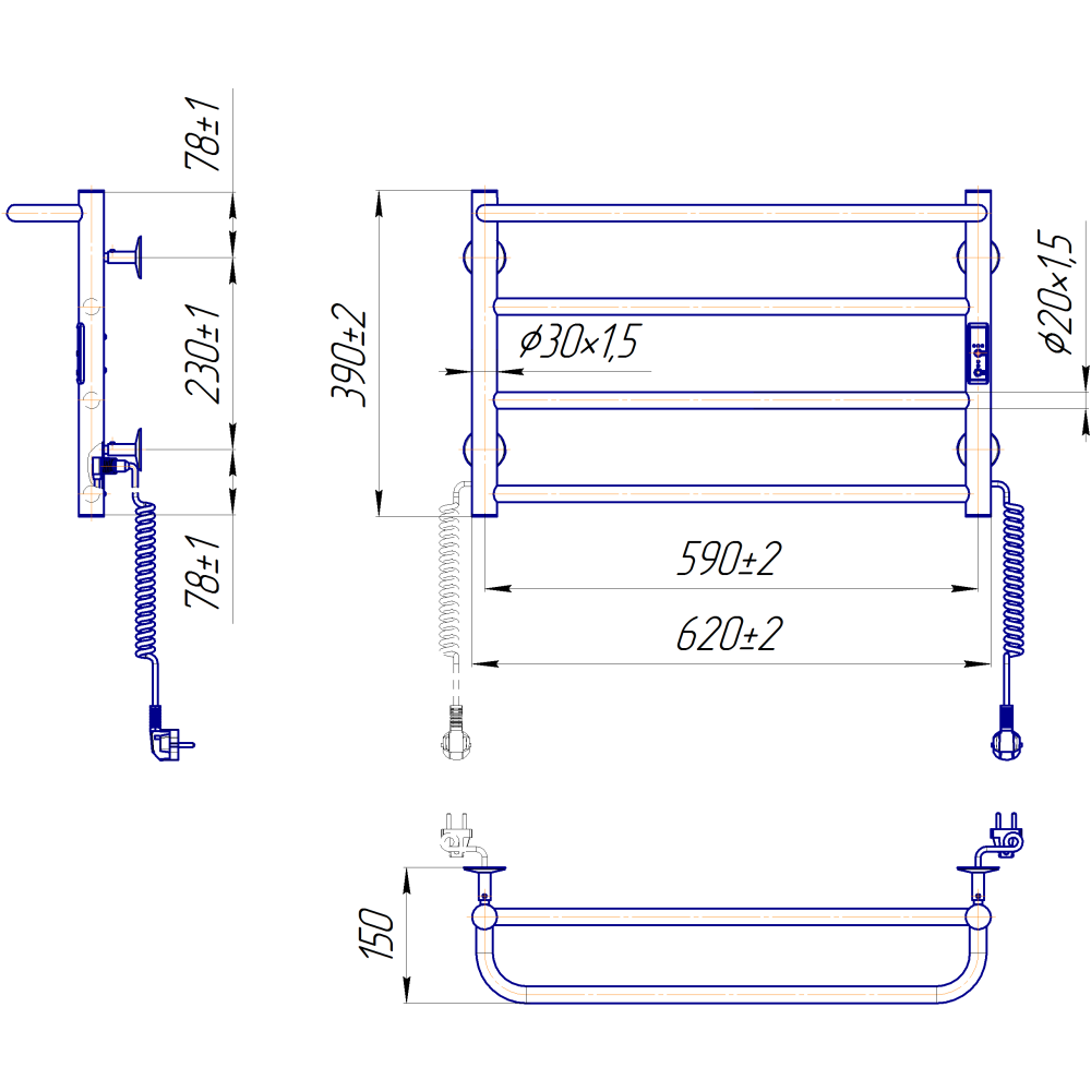 Электрополотенцесушитель бытовая Люкс Сити-І 400х630/150 TR К.Оборудована таймером-регулятором и коннектором для подключения в розетку с любой стороны. Совместима с комплектом скрытого подключения.Имеет 4 ребра и стояк из круглой трубы.Изготовлен из полированной нержавеющей стали без хромирования. Варианты покрытия: полированный или сатин, черный мат, белый глянец, золото, бронза.Температурные режимы таймер-регулятора: 40°С, 45°С, 50°С. Варианты времени: 3, 6 часов и постоянный нагрев. Мощность 60 Вт.Дополнительно для удобства использования можно оснастить навесными крючками.Гарантия – 5 лет.