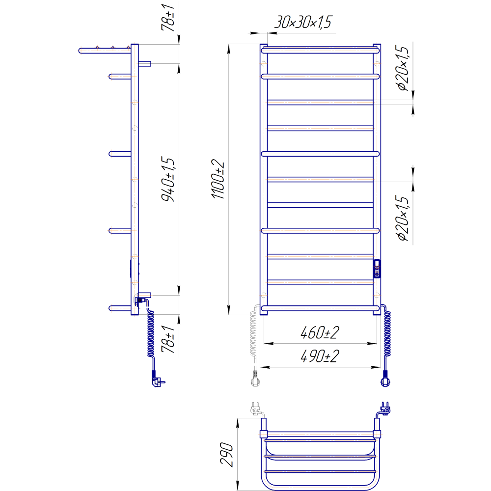 Электросушилка для полотенец бытовая Люксор-I 1100х500/290 TR К.Оборудована таймером-регулятором и коннектором для подключения в розетку с любой стороны. Совместима с комплектом скрытого подключения.Имеет 14 ребер и стойки из профильной трубы.Изготовлен из полированной нержавеющей стали без хромирования. Варианты покрытия: полированный, черный мат, белый глянец, золото.Температурные режимы таймер-регулятора: 40°С, 45°С, 50°С. Варианты времени: 3, 6 часов и постоянный нагрев. Мощность 155 Вт.Дополнительно для удобства использования можно оснастить навесными крючками.Гарантия – 20 лет на корпус / 5 лет на электрическую часть.