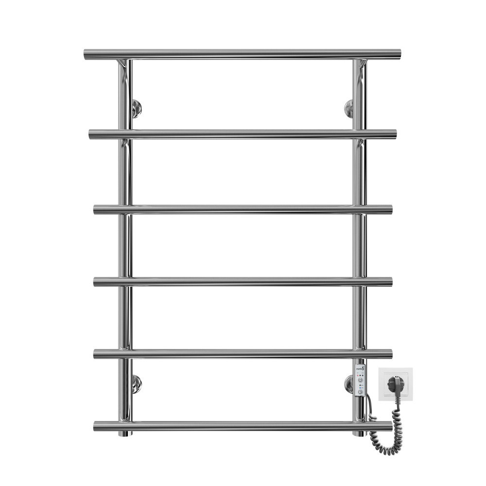 Электросушилка для полотенец бытовая Марио-І 800х630/160 TR К.Оборудована таймером-регулятором и коннектором для подключения в розетку с любой стороны. Совместима с комплектом скрытого подключения.Имеет 6 ребер и стояк из круглой трубы.Изготовлен из полированной нержавеющей стали без хромирования. Варианты покрытия: полированный, черный мат, белый глянец.Температурные режимы таймер-регулятора: 40°С, 45°С, 50°С. Варианты времени: 3, 6 часов и постоянный нагрев. Мощность 140 Вт.Дополнительно для удобства использования можно оснастить навесными крючками.Гарантия – 5 лет.