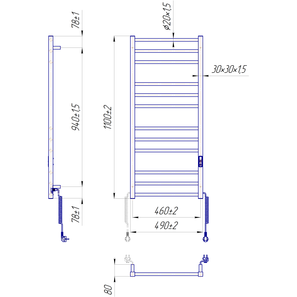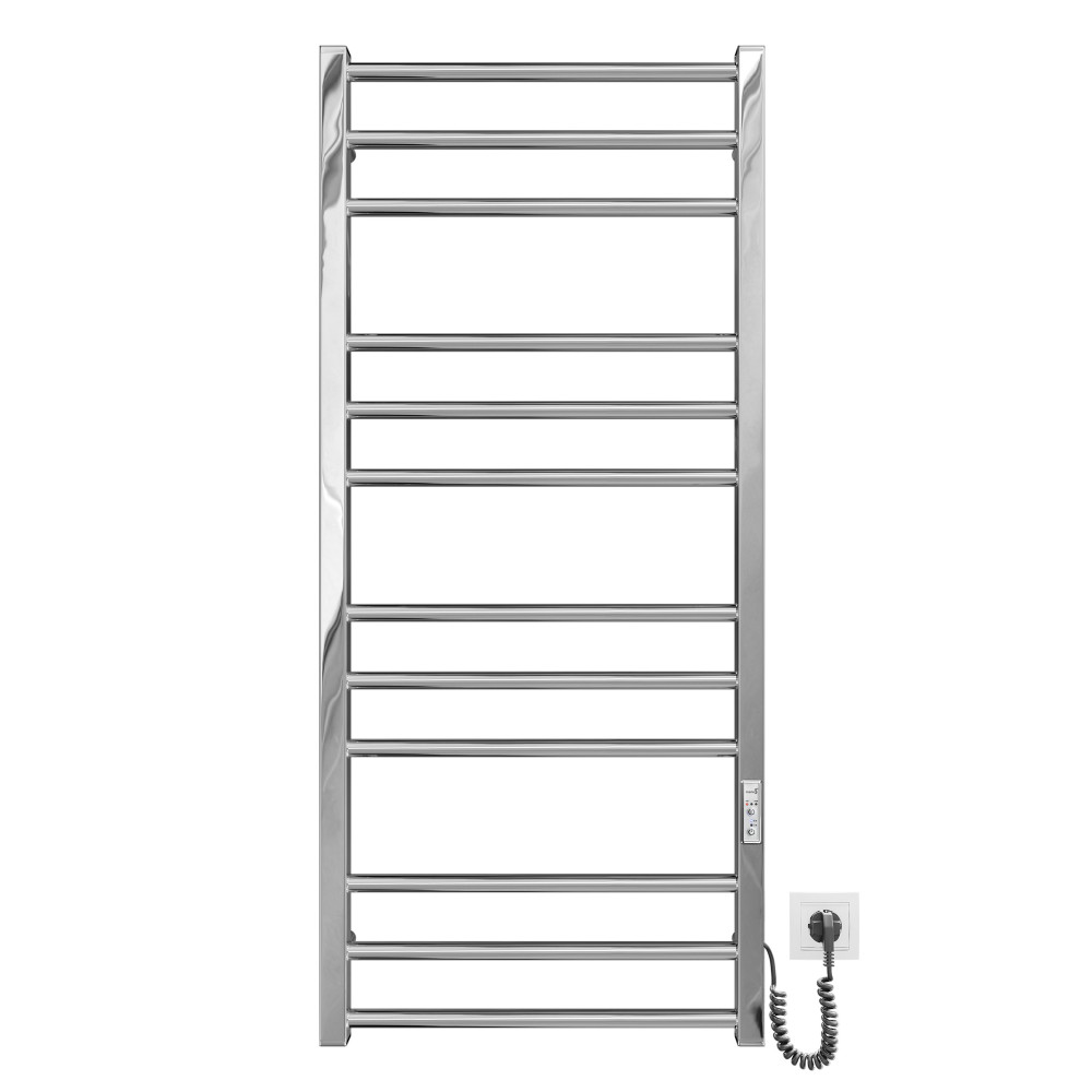 Электросушилка для полотенец бытовая ремиум Классик-I 1100x500/80 TR К.Оборудована таймером-регулятором и коннектором для подключения в розетку с любой стороны. Совместима с комплектом скрытого подключения.Имеет 12 ребер и стойки из профильной трубы.Изготовлен из полированной нержавеющей стали без хромирования. Варианты покрытия: полированный или сатин, черный мат, белый глянец, золото, бронза.Температурные режимы таймер-регулятора: 40°С, 45°С, 50°С. Варианты времени: 3, 6 часов и постоянный нагрев. Мощность: 125 Вт.Дополнительно для удобства использования можно оснастить навесными крючками.Гарантия – 20 лет на корпус / 5 лет на электрическую часть.