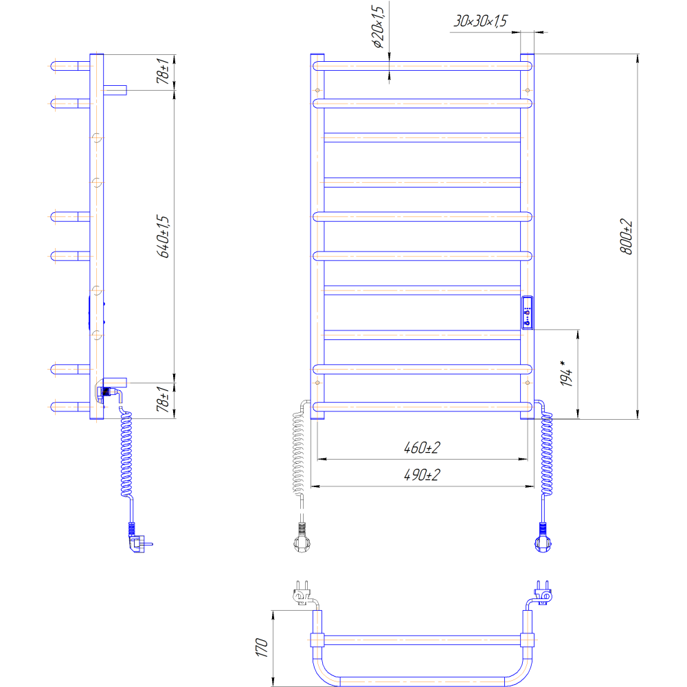 Электросушилка для полотенец бытовая Премиум Люкс-I 800х500/170 TRОборудована таймером-регулятором и коннектором для подключения в розетку с любой стороны. Совместима с комплектом скрытого подключения.Имеет 10 ребер и стойки из профильной трубы.Изготовлен из полированной нержавеющей стали без хромирования. Варианты покрытия: полированный или сатин, черный мат, белый глянец, золото, бронза.Температурные режимы таймер-регулятора: 40°С, 45°С, 50°С. Варианты времени: 3, 6 часов и постоянный нагрев. Мощность 140 Вт.Дополнительно для удобства использования можно оснастить навесными крючками.Гарантия – 20 лет на корпус / 5 лет на электрическую часть.