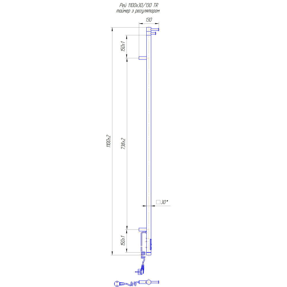 Электросушилка для полотенец бытовая Рей Кубо-І 1100x30/130 TR.Оборудована таймер-регулятором. Совместима с комплектом скрытого подключения.Имеет стояк из квадратного профиля.Изготовлен из полированной нержавеющей стали без хромирования. Варианты покрытия: полированный, сатин, черный мат.Температурные режимы таймер-регулятора: 40°С, 45°С, 50°С. Варианты времени: 3, 6 часов и постоянный нагрев. Мощность 30 Вт.Гарантия – 20 лет на корпус / 5 лет на электрическую часть.