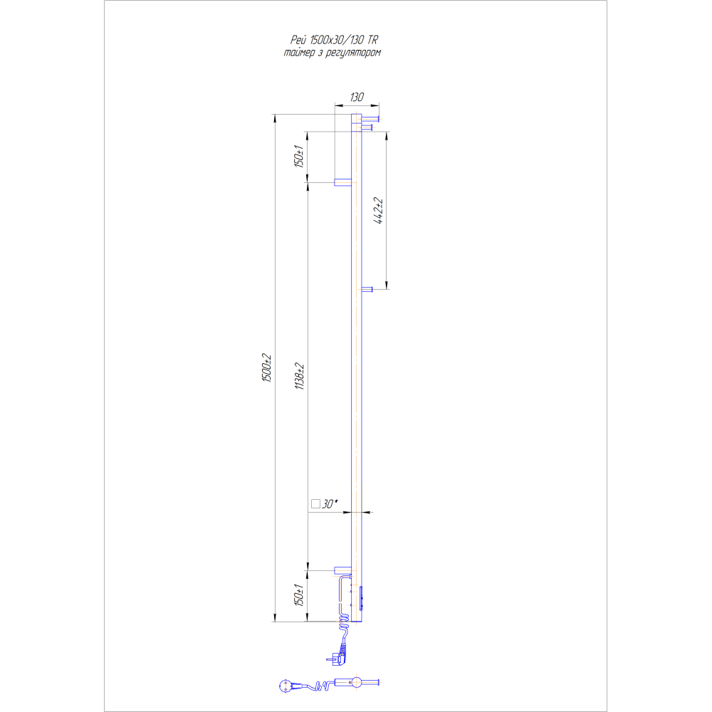 Электросушилка для полотенец бытовая Рей Кубо-І 1500x30/130 TR.Оборудована таймер-регулятором. Совместима с комплектом скрытого подключения.Имеет стояк из квадратного профиля.Изготовлен из полированной нержавеющей стали без хромирования. Варианты покрытия: полированный, сатин, черный мат.Температурные режимы таймер-регулятора: 40°С, 45°С, 50°С. Варианты времени: 3, 6 часов и постоянный нагрев. Мощность 50 Вт.Гарантия – 20 лет на корпус / 5 лет на электрическую часть.