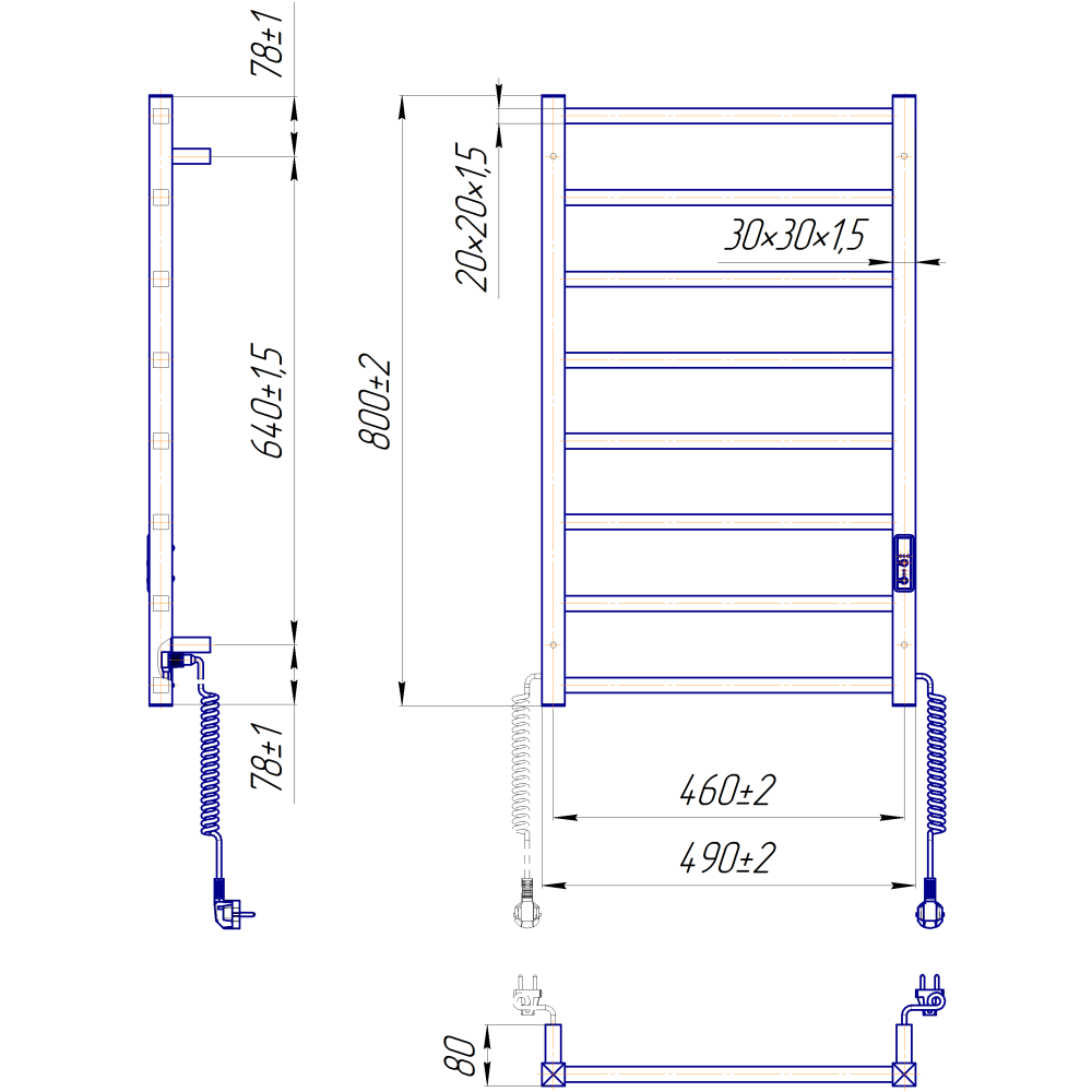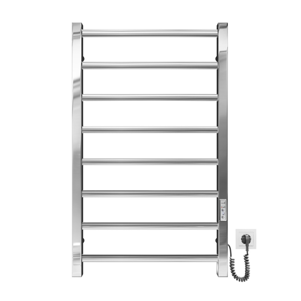 Электросушилка для полотенец бытовая Токио-I 800х500/80 TR К.Оборудована таймером-регулятором и коннектором для подключения в розетку с любой стороны. Совместима с комплектом скрытого подключения.Имеет 8 ребер и стоек из квадратного профиля.Изготовлен из полированной нержавеющей стали без хромирования. Варианты покрытия: полированный или сатин, черный мат, белый глянец, золото, бронза.Температурные режимы таймер-регулятора: 40°С, 45°С, 50°С. Варианты времени: 3, 6 часов и постоянный нагрев. Мощность 120 Вт.Дополнительно для удобства использования можно оснастить навесными крючками.Гарантия – 20 лет на корпус / 5 лет на электрическую часть.