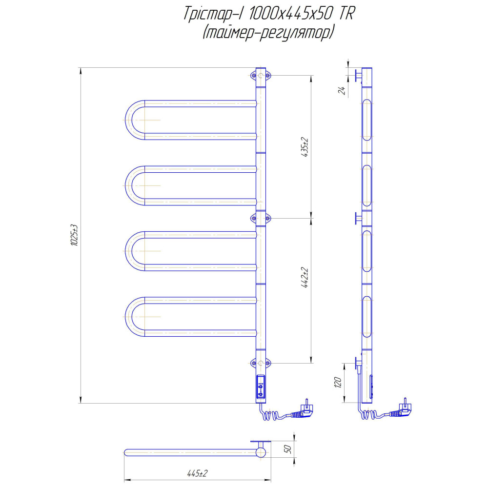 Полотенцесушитель бытовой Тристар-I 1000х445/55 TR.Оборудована таймер-регулятором.Имеет 4 ребра и стояк из круглой трубы.Изготовлен из полированной нержавеющей стали без хромирования. Варианты покрытия: полированная.Температурные режимы таймер-регулятора: 40°С, 45°С, 50°С. Варианты времени: 3, 6 часов и постоянный нагрев. Мощность 115 Вт.Дополнительно для удобства использования можно оснастить навесными крючками.Гарантия – 5 лет.