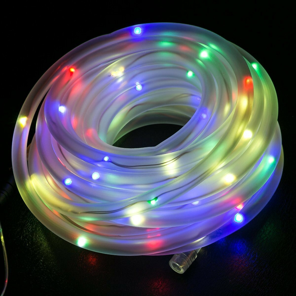Сонячна панель, 1 акумуляторна батарея NI-MH типу AAA, 50 багатобарвних світлодіодів, відстань від сонячної панелі до першого світлодіода 2 м, відстань між світлодіодами 10 см, загальна довжина 6,9 м, блимає