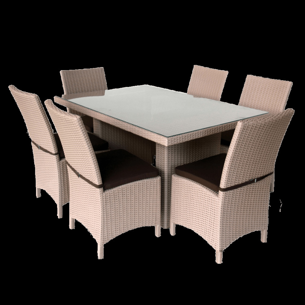 Комплектація: стіл, 6 крісел, набір подушок, скло.