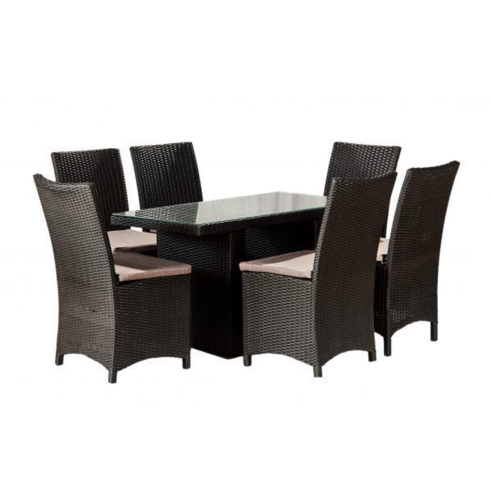 Комплектація: стіл, 6 крісел, набір подушок, скло.