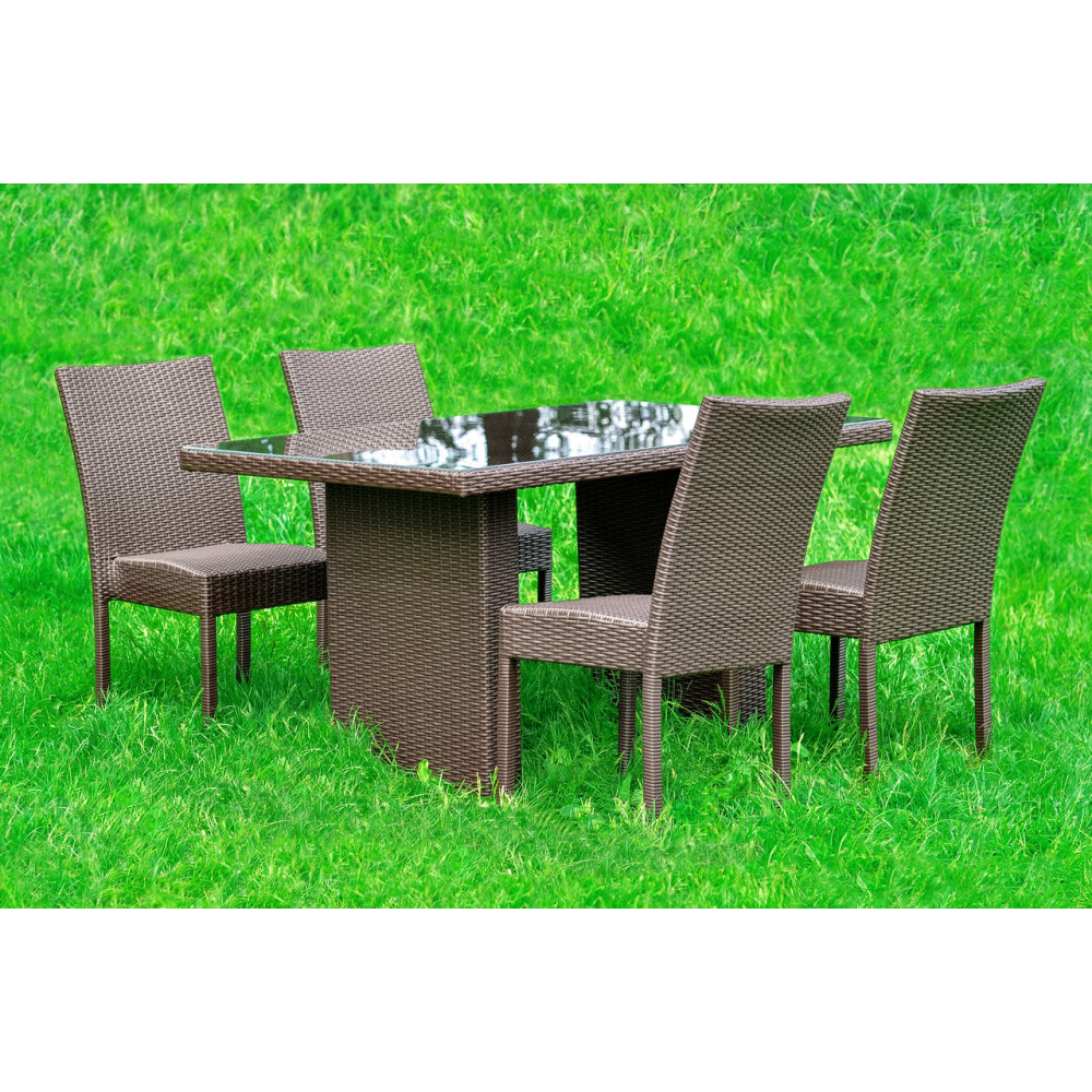 Елегантний садовий комплект із ротангу ГРАЦІЯ МІДЛ складається із 4 крісел та прямокутного столу. Комплект виготовлено з штучного ротангу, стійкого до УФ променів, різких перепадів температур та зміни вологості, не деформується при використані, легкий у догляді. Основа меблів - металевий каркас.