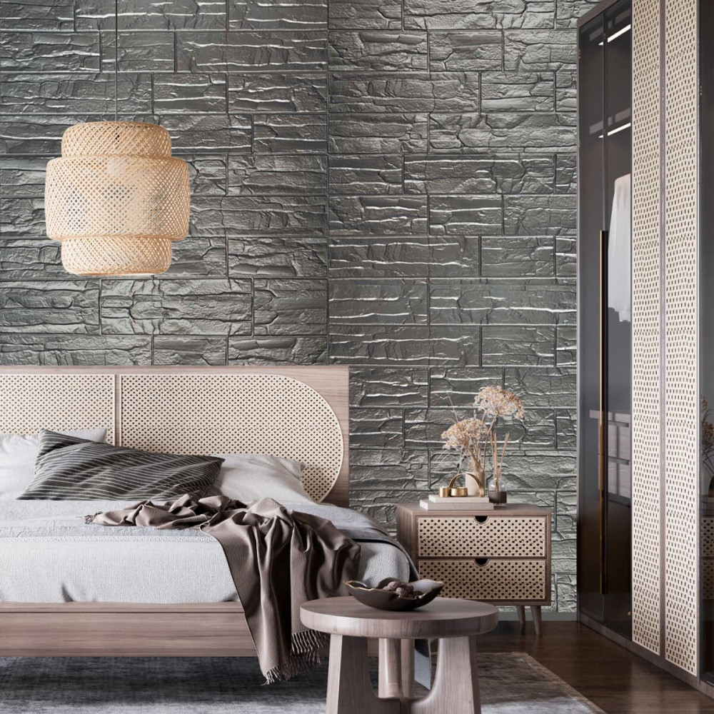 Декоративна панель під камінь виготовлена із спіненого поліпропілену. Це універсальний і щільний матеріал, але водночас легкий. Його термін служби понад 20 років. Самоклеючі 3D панелі з поліпропілену - це швидкий ремонт з мінімумом шуму та будівельного сміття.