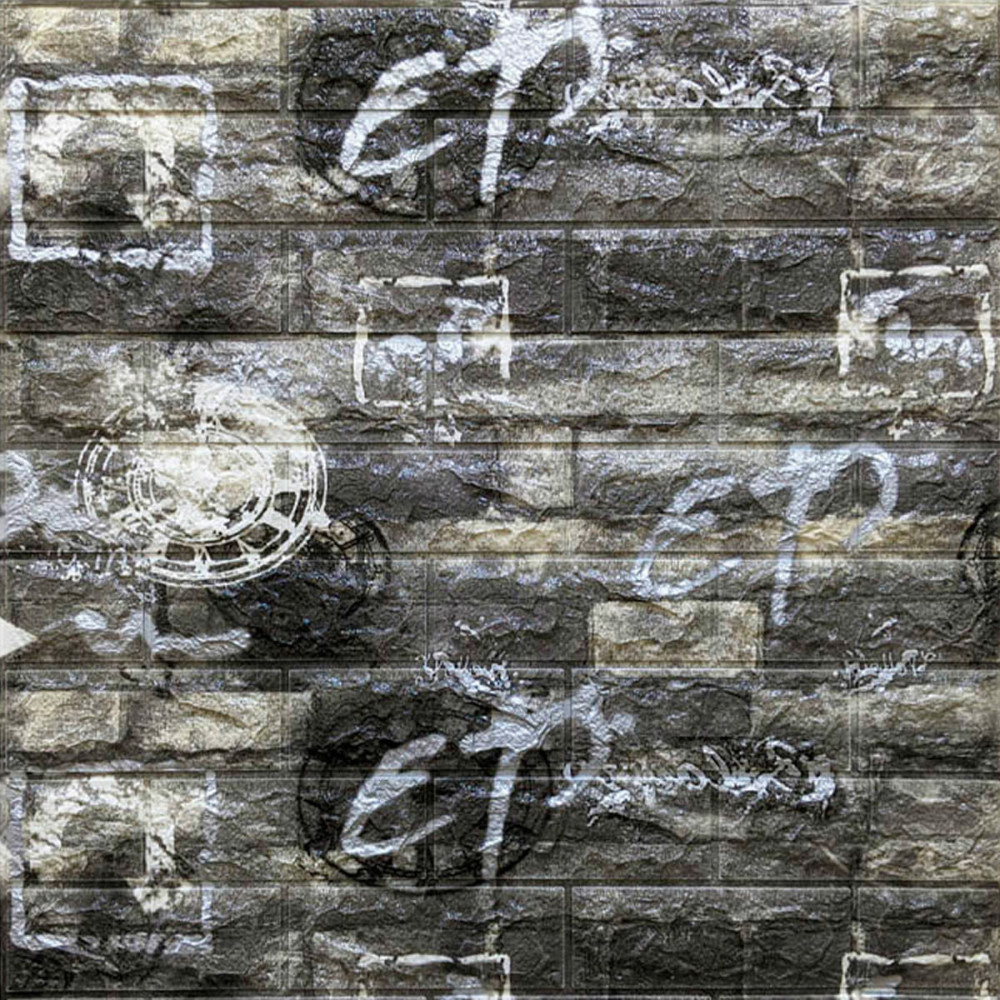 Самоклеюча декоративна 3D панель під чорну цеглу графіті 700х770х6мм (027)