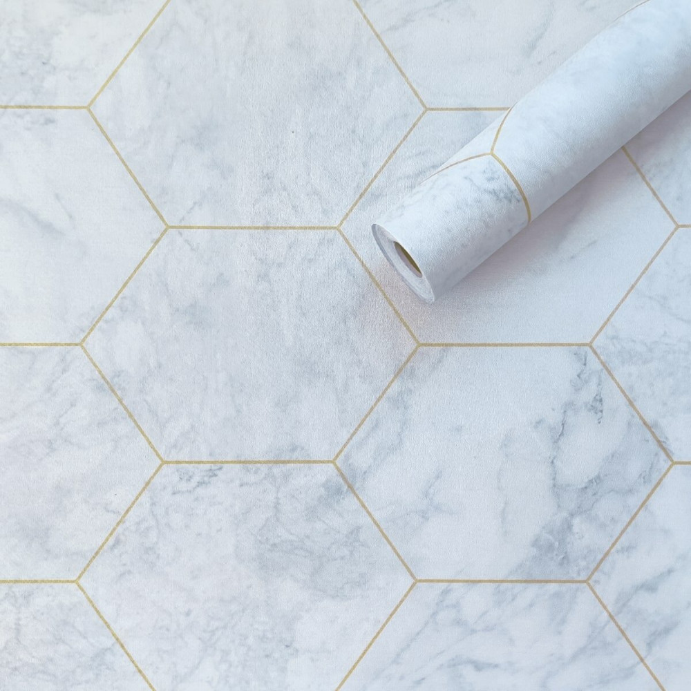 Самоклеюча плівка малахітовий мармур золоті соти 0,45х10м