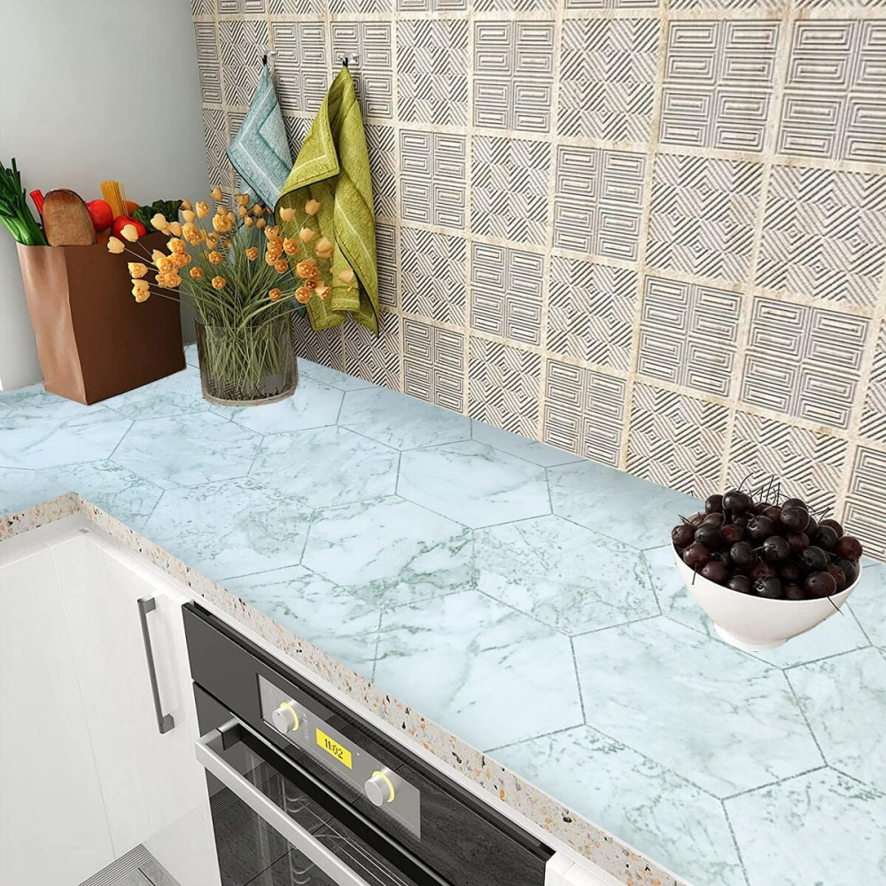 Самоклеюча плівка нефритовий мармур срібні соти 0,45х10м