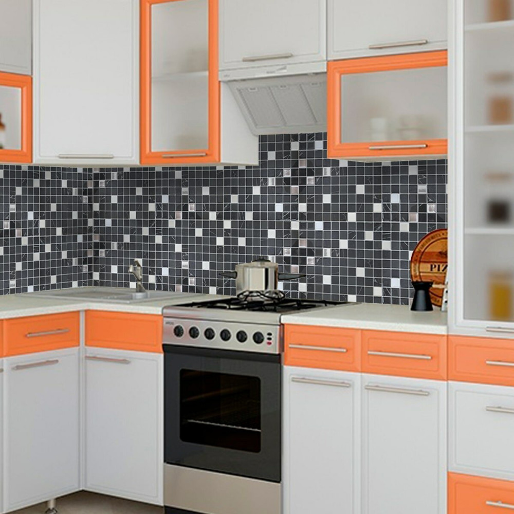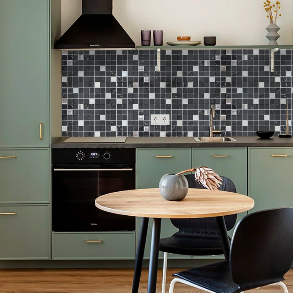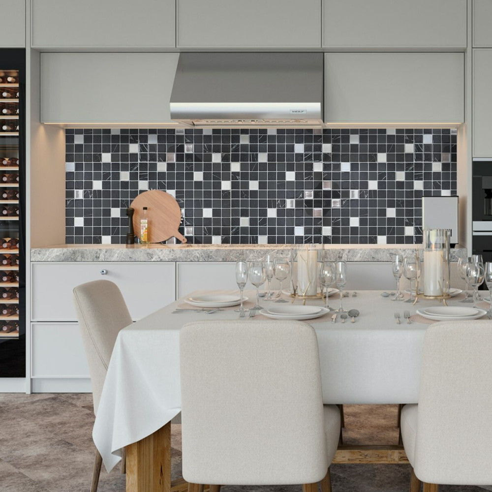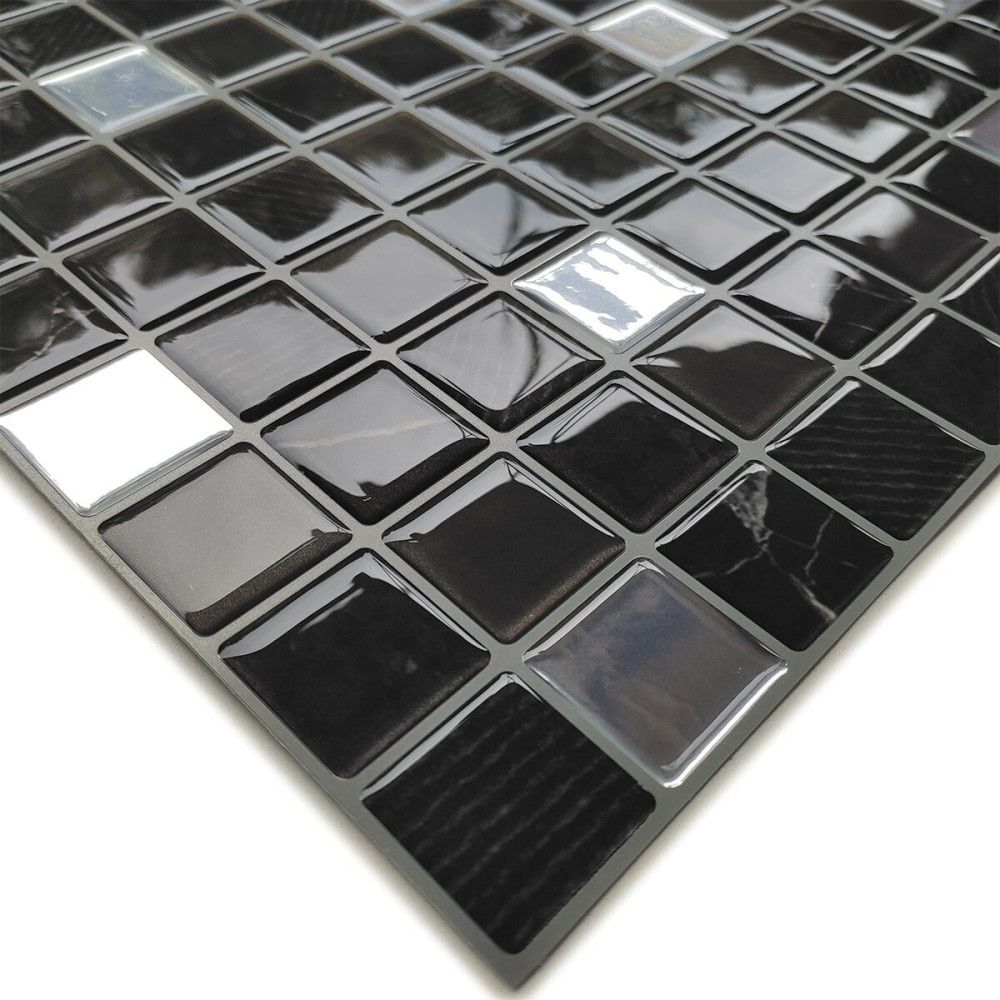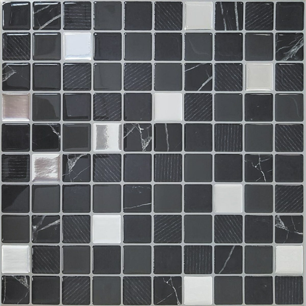Самоклеюча поліуретанова плитка чорно-біла мозаїка 305х305х1мм (D) SW-00001149