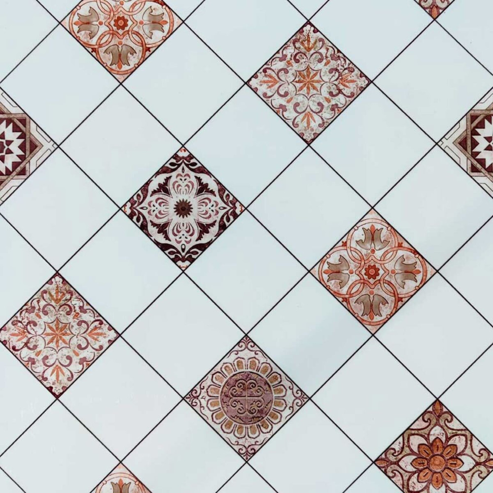 Самоклеюче вінілове покриття - це плитка з трендовим малюнком. Прозорий захисний шар з міцного ПВХ оберігає покриття від стирання і механічних пошкоджень.