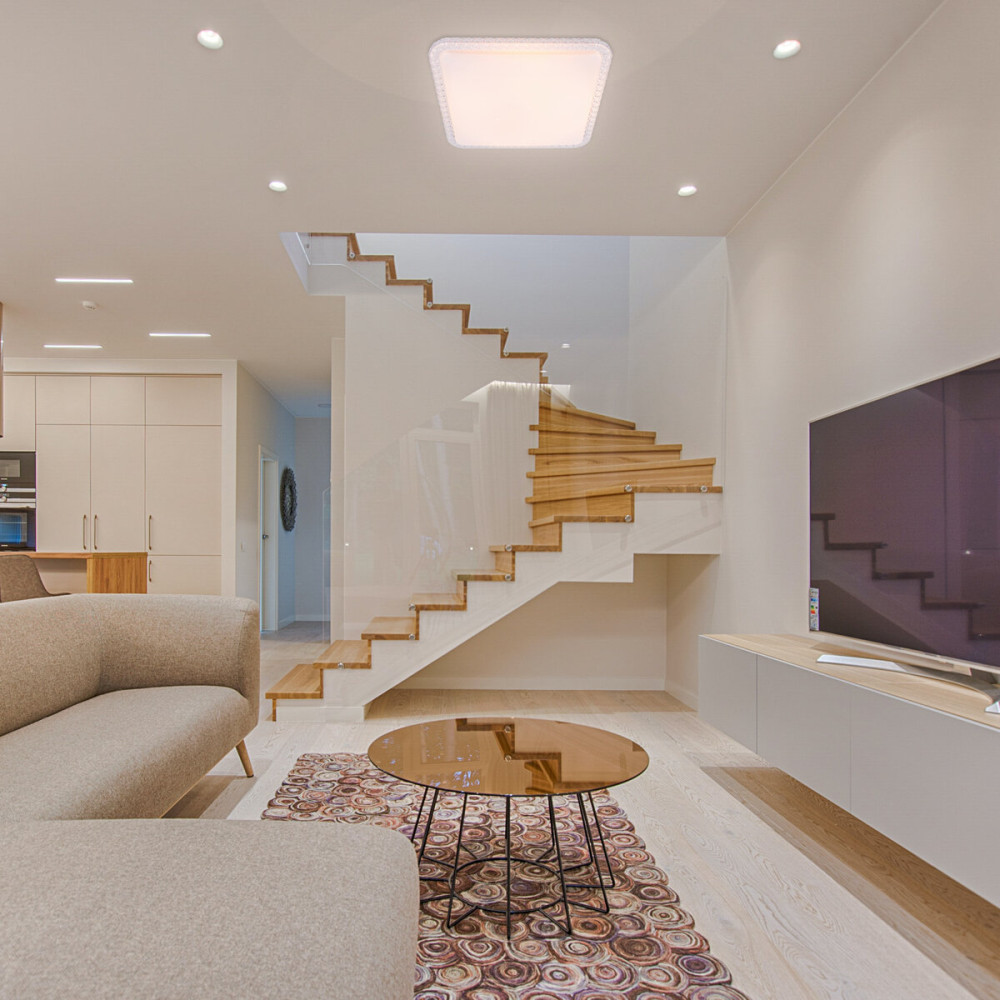 Плафон люстри виготовлений з високоякісного акрилу. Цей матеріал забезпечує рівномірне розподілення світла та створює приємний розсіяний ефект. Плафон прикрашений малими прозорими цятками, які при включенні створюють захоплюючу гру світла та тіней. Це надає освітленню вашого приміщення особливий шарм і таємничість.Додатково, вона має вбудовані світлодіоди з трьома кольоровими температурами: 3100K, 4500K та 6100K. Це дозволяє вам вибрати підходящу кольорову схему освітлення відповідно до вашого настрою та потреб.
