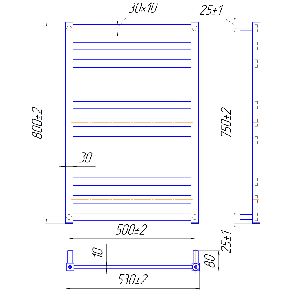 Водяна рушникосушарка Чикаго 800х530 з міжцентровою відстанню для підключення 500мм, діаметр підключення G 1/2 '' складається з 9 ребер. Рушникосушарка Чикаго заводу виробника Mario виготовлена з нержавіючої сталі АІSI 304 може бути укомплектована електричним теном.