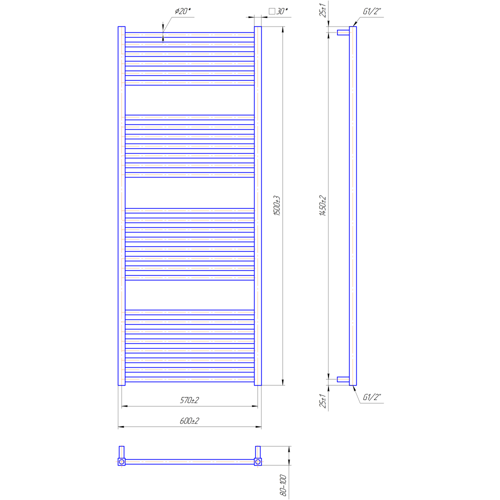 Рушникосушарка "Маріо" Гера 1500х600/570. Розміри: висота - 1500 мм, ширина - 600 мм, глибина 80 мм, міжцентрова відстань для підключення - 570 мм, діаметр підключення G1/2''. Варіанти підключення: нижнє, діагональне та бічне. Кількість ребер - 29, стояки з квадратного профілю.Виготовлена з полірованої нержавіючої сталі без хромування. Варіанти покриття: полірована або сатин, чорний мат, білий глянець, золото, бронза. Для всесезонної роботи водяну модель можна переобладнати на комбіновану, встановивши ТЕН, рекомендована потужність 600 Вт.Сумісні аксесуари: поворотні полиці та навісні гачки для збільшення функціональності.Рекомендовано підключати рушникосушарку за допомогою кранів Маріо.Гарантія - 50 років в закритій системі опалення, 5 років у централізованій.
