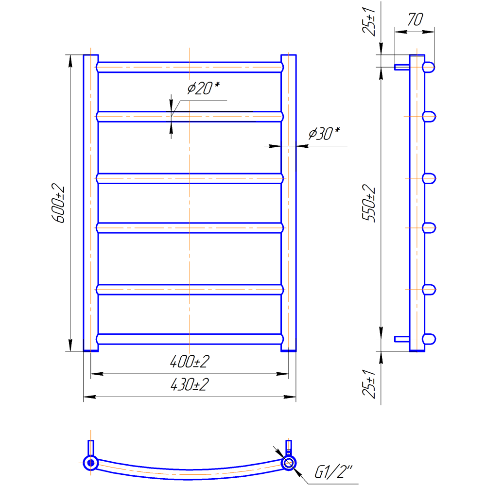 Рушникосушарка "Маріо" Класік 600х430/400. Розміри: висота - 600 мм, ширина - 430 мм, глибина 90 мм, міжцентрова відстань для підключення - 400 мм, діаметр підключення G1/2''. Варіанти підключення: нижнє, діагональне та бічне. Кількість ребер - 6, стояки з круглої труби.Виготовлена з полірованої нержавіючої сталі без хромування. Варіанти покриття: полірована або сатин, чорний мат, білий глянець, золото, бронза. Для всесезонної роботи водяну модель можна переобладнати на комбіновану, встановивши ТЕН, рекомендована потужність 120 Вт.Сумісні аксесуари: поворотні полиці та навісні гачки для збільшення функціональності.Рекомендовано підключати рушникосушарку за допомогою кранів Маріо.Гарантія - 50 років в закритій системі опалення, 5 років у централізованій.