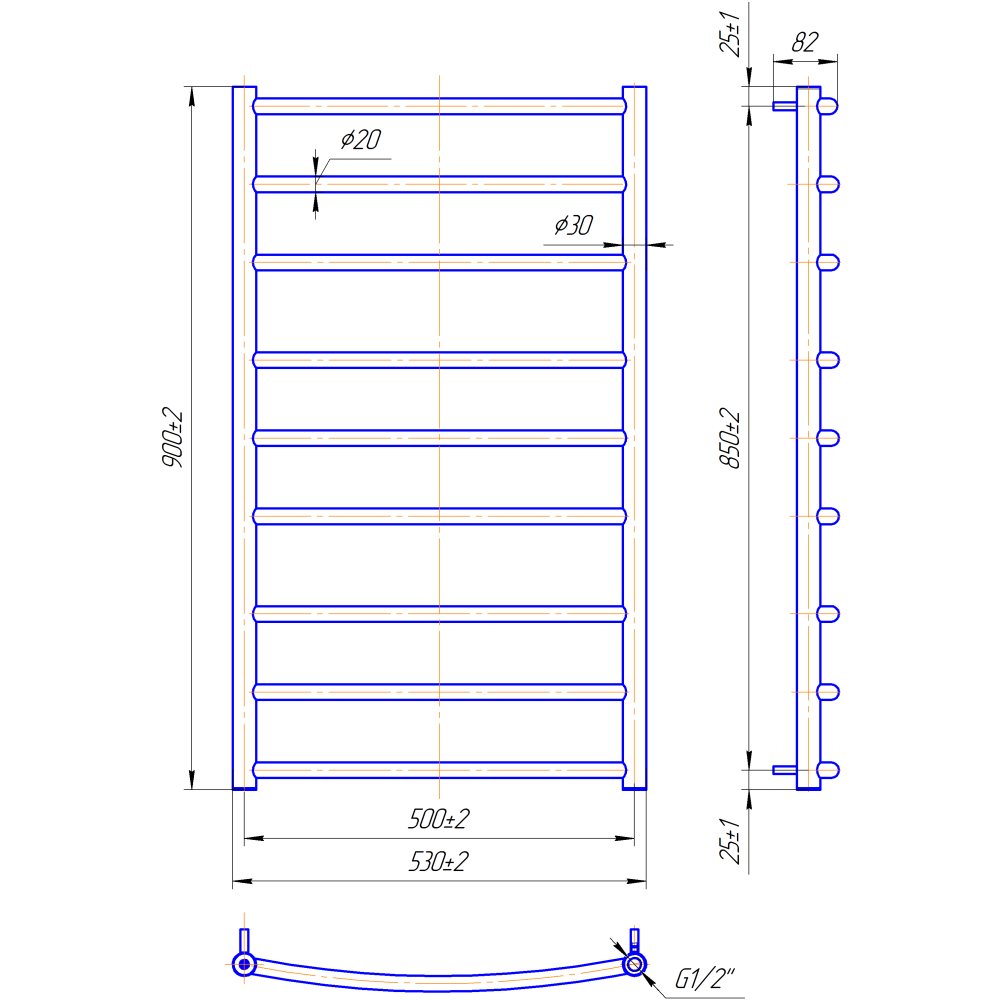 Рушникосушарка "Маріо" Класік 900х530/500. Розміри: висота - 900 мм, ширина - 530 мм, глибина 105 мм, міжцентрова відстань для підключення - 500 мм, діаметр підключення G1/2''. Варіанти підключення: нижнє, діагональне та бічне. Кількість ребер - 9, стояки з круглої труби.Виготовлена з полірованої нержавіючої сталі без хромування. Варіанти покриття: полірована або сатин, чорний мат, білий глянець, золото, бронза. Для всесезонної роботи водяну модель можна переобладнати на комбіновану, встановивши ТЕН, рекомендована потужність 200 Вт.Сумісні аксесуари: поворотні полиці та навісні гачки для збільшення функціональності.Рекомендовано підключати рушникосушарку за допомогою кранів Маріо.Гарантія - 50 років в закритій системі опалення, 5 років у централізованій.