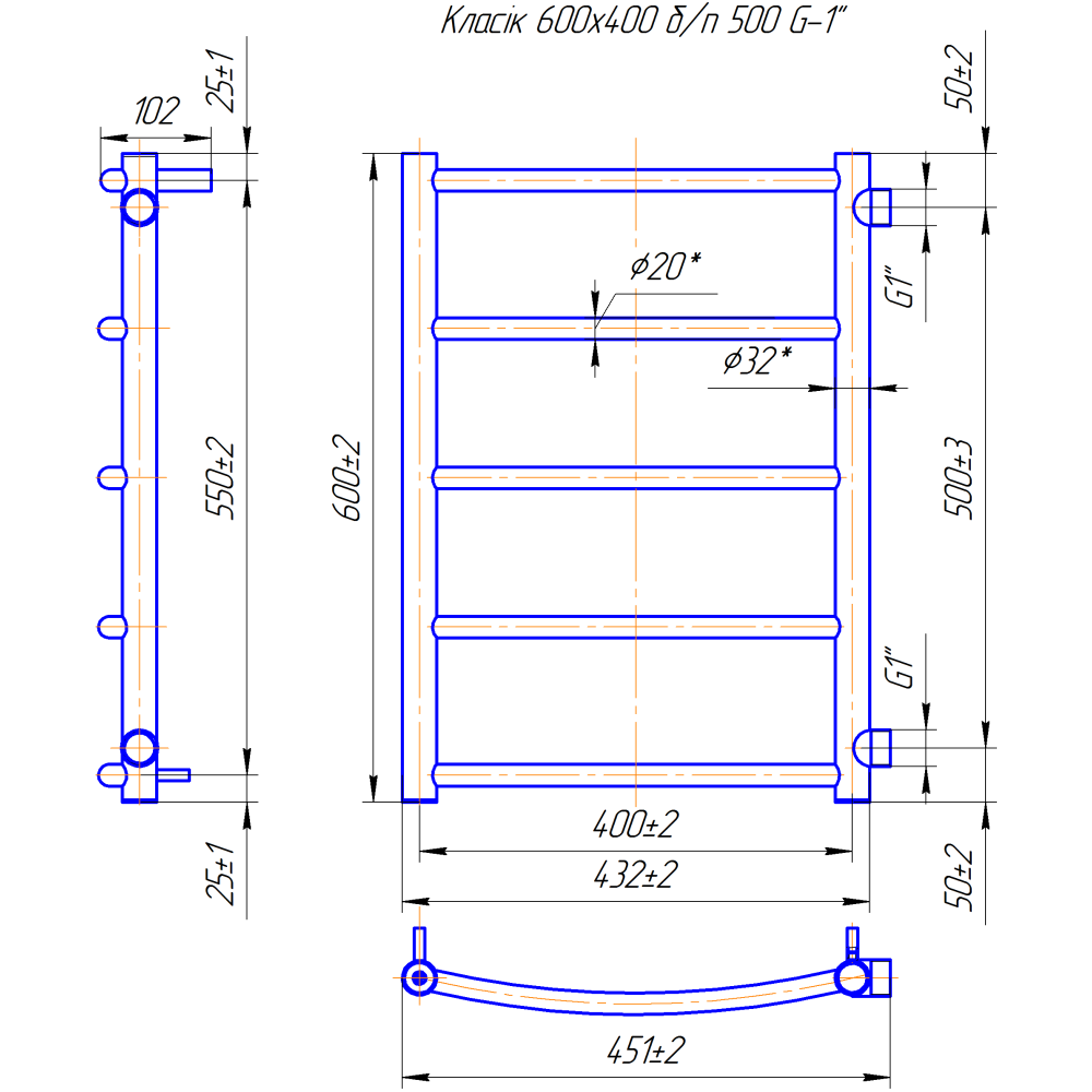 Водяна рушникосушарка Класик Б/П 1" 600х450 з міжцентровою відстанню для підключення 500мм, діаметр підключення G 1'' складається з 5 ребер. Рушникосушарка Класік Б/П 1" заводу-виробника Mario виготовлена з нержавіючої сталі АІSI 304. Є можливість ⟳перевернуть на 180° ; дзеркально відобразивши (правосторонні і лівосторонні перемички)