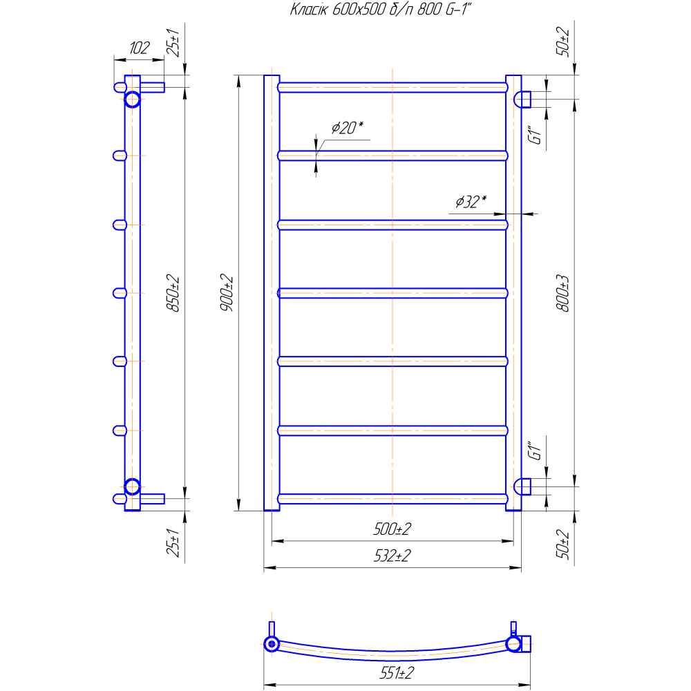 Водяна рушникосушарка Класик Б/П 1" 900х550 з міжцентровою відстанню для підключення 800мм, діаметр підключення G 1'' складається з 7 ребер. Рушникосушарка Класік Б/П 1" заводу-виробника Mario виготовлена з нержавіючої сталі АІSI 304. Є можливість ⟳перевернуть на 180° ; дзеркально відобразивши (правосторонні і лівосторонні перемички)