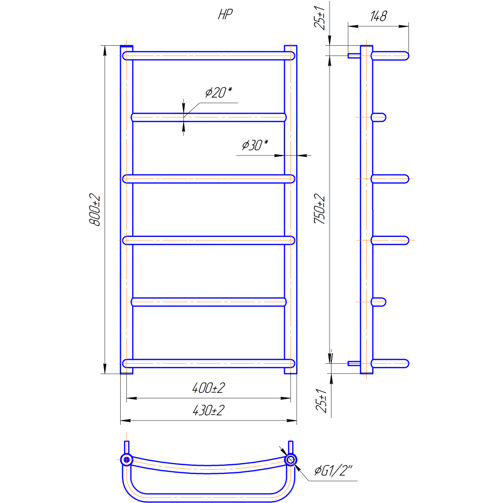 Рушникосушарка "Маріо" Люкс HP 800х430/400. Розміри: висота - 800 мм, ширина - 430 мм, глибина 170 мм, міжцентрова відстань для підключення - 400 мм, діаметр підключення G1/2''.Приставка HP (Heat Point) - лінійка водяних та електричних рушникосушарок економ-сегменту. Єдиною відмінністю є менша кількість перемичок порівняно з виробами стандартного або преміум сегмента. Варіанти підключення: нижнє, діагональне та бічне. Кількість ребер - 6, стояки з круглої труби.Виготовлена з полірованої нержавіючої сталі без хромування. Варіанти покриття: полірована або сатин, чорний мат, білий глянець, золото, бронза. Для всесезонної роботи водяну модель можна переобладнати на комбіновану, встановивши ТЕН, рекомендована потужність 120 Вт.Сумісні аксесуари: поворотні полиці та навісні гачки для збільшення функціональності.Рекомендовано підключати рушникосушарку за допомогою кранів Маріо.Гарантія - 50 років в закритій системі опалення, 5 років у централізованій.
