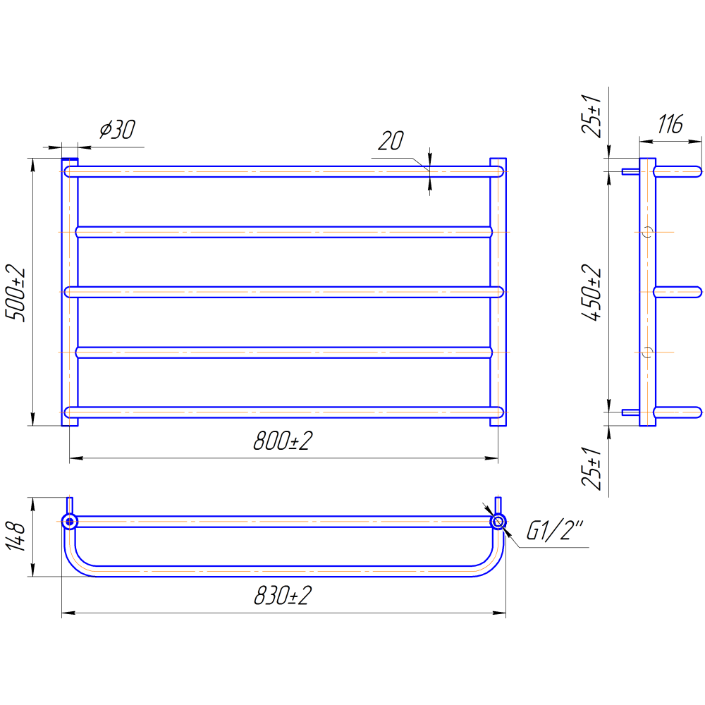 Рушникосушарка "Маріо" Люкс Сіті 500х830/800. Розміри: висота - 500 мм, ширина - 830 мм, глибина 150 мм, міжцентрова відстань для підключення - 800 мм, діаметр підключення G1/2''. Варіанти підключення: нижнє, діагональне та бічне. Кількість ребер - 5, стояки з квадратного профілю.Виготовлена з полірованої нержавіючої сталі без хромування. Варіанти покриття: полірована або сатин, чорний мат, білий глянець, золото, бронза.Для всесезонної роботи водяну модель можна переобладнати на комбіновану, встановивши ТЕН, рекомендована потужність 120 Вт. Сумісні аксесуари: поворотні полиці та навісні гачки для збільшення функціональності.Рекомендовано підключати рушникосушарку за допомогою кранів Маріо.Гарантія - 50 років в закритій системі опалення, 5 років у централізованій.