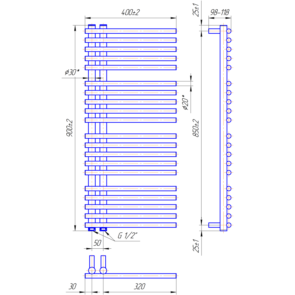 Рушникосушарка "Маріо" Преміум Марсель 900х400/50. Розміри: висота - 900 мм, ширина - 400 мм, глибина 100 мм, міжцентрова відстань для підключення - 50 мм, діаметр підключення G1/2''. Варіанти підключення: нижнє, діагональне та бічне. Кількість ребер - 20, стояки з круглої труби.Виготовлена з полірованої нержавіючої сталі без хромування. Варіанти покриття: полірована, чорний мат, білий глянець. Для всесезонної роботи водяну модель можна переобладнати на комбіновану, встановивши ТЕН, рекомендована потужність 300 Вт.Сумісні аксесуари: поворотні полиці та навісні гачки для збільшення функціональності.Рекомендовано підключати рушникосушарку за допомогою кранів Маріо.Гарантія - 50 років в закритій системі опалення, 5 років у централізованій.