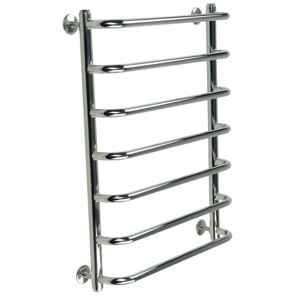 Рушникосушарка "Маріо" Стандарт 800х530/500. Розміри: висота - 800 мм, ширина - 530 мм, глибина 170 мм, міжцентрова відстань для підключення - 500 мм, діаметр підключення G1/2''. Варіанти підключення: нижнє, діагональне та бічне. Кількість ребер - 8, стояки з круглої труби.Виготовлена з полірованої нержавіючої сталі без хромування. Варіанти покриття: полірована або сатин, чорний мат, білий глянець, золото, бронза. Для всесезонної роботи водяну модель можна переобладнати на комбіновану, встановивши ТЕН, рекомендована потужність 200 Вт.Сумісні аксесуари: поворотні полиці та навісні гачки для збільшення функціональності.Рекомендовано підключати рушникосушарку за допомогою кранів Маріо.Гарантія - 50 років в закритій системі опалення, 5 років у централізованій.