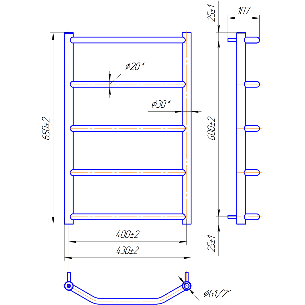 Рушникосушарка "Маріо" Трапеція HP 650х430/400. Розміри: висота - 650 мм, ширина - 430 мм, глибина 130 мм, міжцентрова відстань для підключення - 400 мм, діаметр підключення G1/2''. Приставка HP (Heat Point) - лінійка водяних та електричних рушникосушарок економ-сегменту. Єдиною відмінністю є менша кількість перемичок порівняно з виробами стандартного або преміум сегмента.Варіанти підключення: нижнє, діагональне та бічне. Кількість ребер - 5, стояки з круглої труби.Виготовлена з полірованої нержавіючої сталі без хромування. Варіанти покриття: полірована або сатин, чорний мат, білий глянець, золото, бронза. Для всесезонної роботи водяну модель можна переобладнати на комбіновану, встановивши ТЕН, рекомендована потужність 120 Вт.Сумісні аксесуари: поворотні полиці та навісні гачки для збільшення функціональності.Рекомендовано підключати рушникосушарку за допомогою кранів Маріо.Гарантія - 50 років в закритій системі опалення, 5 років у централізованій.