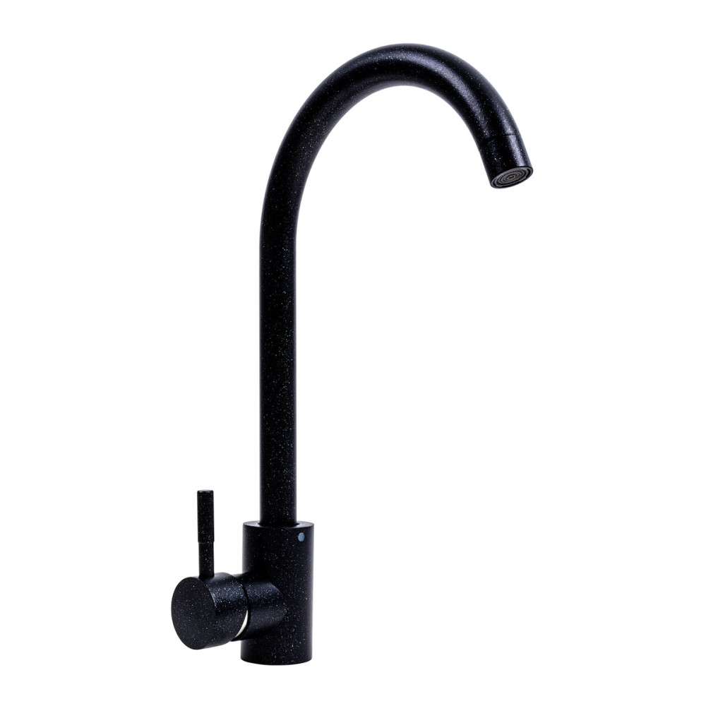 Змішувач кухонний Platinum 56 B NESP (3008 А) відзначається сучасним та стильним дизайном. Він має чорний металік колір, який додає елегантності та оригінальності вашій кухні. Його висота складає 330 мм, що робить його ідеальним для використання з великими посудинами та каструлями. Довжина виливу становить 200 мм, що забезпечує зручність при наповненні горщиків та митті посуду. Змішувач виготовлений з високоякісної нержавіючої сталі SUS304, що гарантує його тривалий термін служби та стійкість до корозії.