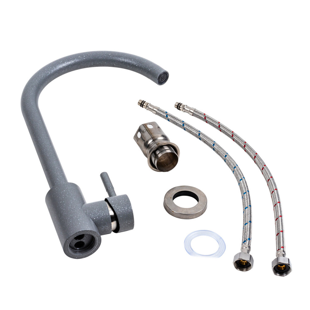 Змішувач кухонний Platinum 56 B NESP (3008 А) відзначається сучасним та стильним дизайном. Він має колір сірий металік, який додає елегантності та оригінальності вашій кухні. Його висота складає 330 мм, що робить його ідеальним для використання з великими посудинами та каструлями. Довжина виливу становить 200 мм, що забезпечує зручність при наповненні горщиків та митті посуду. Змішувач виготовлений з високоякісної нержавіючої сталі SUS304, що гарантує його тривалий термін служби та стійкість до корозії.