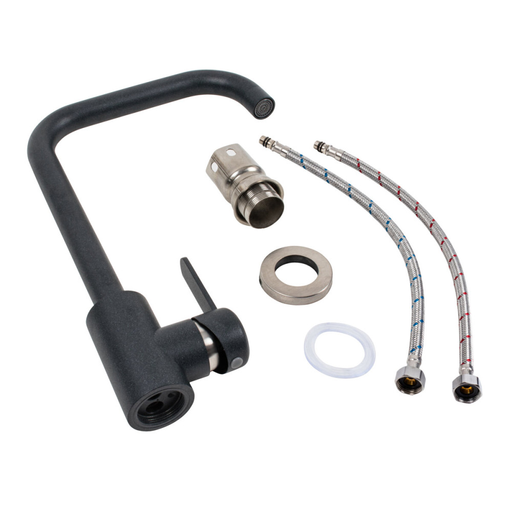 Змішувач кухонний Platinum KT 11 (3008B-FH) Антрацит- це практичне та стильне обладнання для вашої кухні, яке поєднує в собі зручність, якість та елегантний дизайн. З цим змішувачем ви зможете ефективно та комфортно виконувати різноманітні завдання з водопостачання.