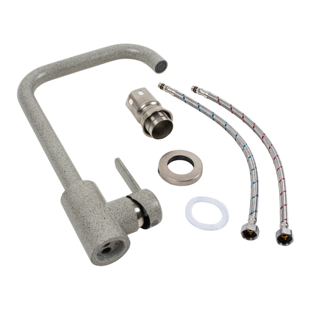 Змішувач кухонний Platinum KT 11 (3008B-FH) Сірий- це практичне та стильне обладнання для вашої кухні, яке поєднує в собі зручність, якість та елегантний дизайн. З цим змішувачем ви зможете ефективно та комфортно виконувати різноманітні завдання з водопостачання.
