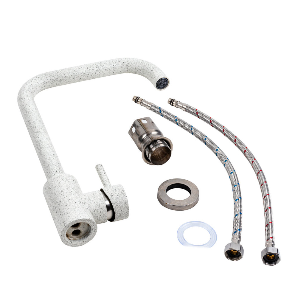 Змішувач кухонний Platinum NS02B (3008B-NA) Білий в крапку- це вишуканий та функціональний аксесуар для вашої кухні, призначений для забезпечення комфорту та ефективності під час готування та миття посуду. Ось більше інформації про цей змішувач: