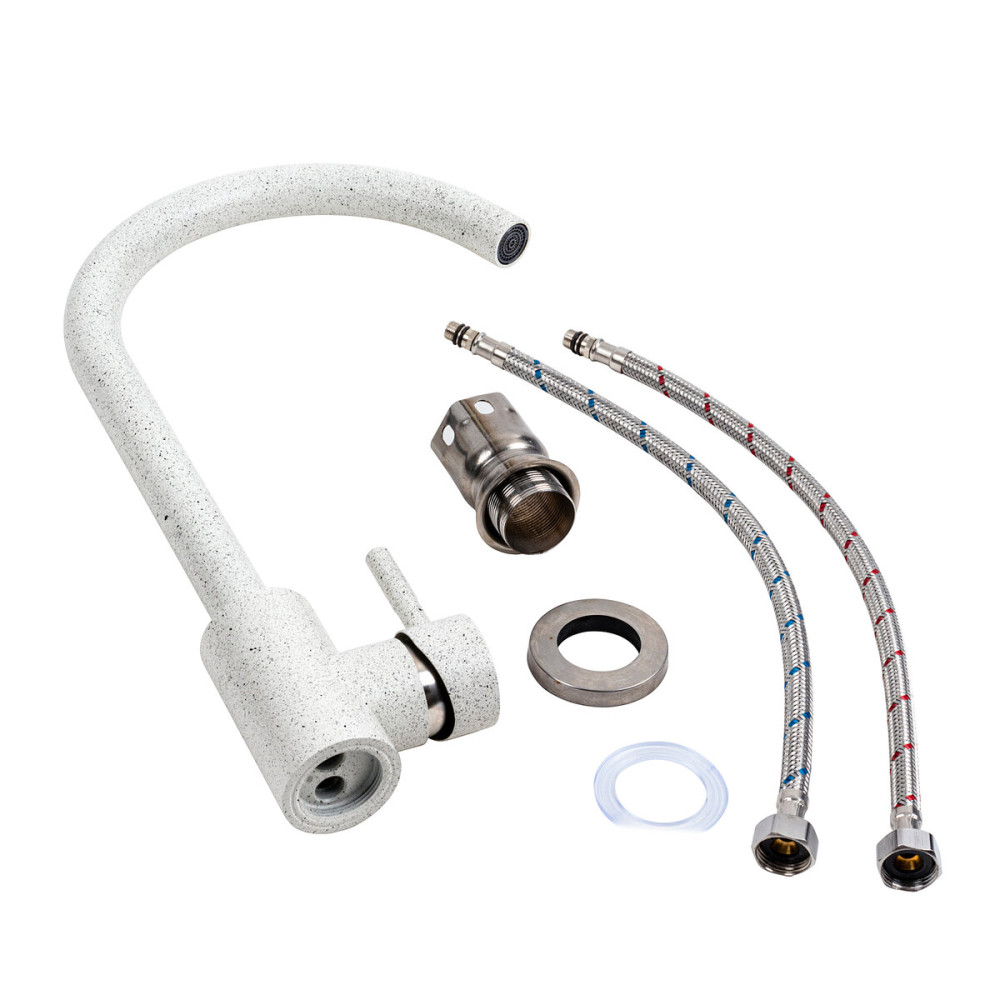 Змішувач кухонний Platinum 56 B NESP (3008 А) відзначається сучасним та стильним дизайном. Він має колір білий в крапку, який додає елегантності та оригінальності вашій кухні. Його висота складає 330 мм, що робить його ідеальним для використання з великими посудинами та каструлями. Довжина виливу становить 200 мм, що забезпечує зручність при наповненні горщиків та митті посуду. Змішувач виготовлений з високоякісної нержавіючої сталі SUS304, що гарантує його тривалий термін служби та стійкість до корозії.