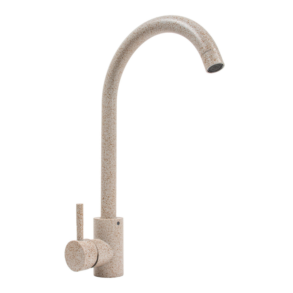 Змішувач кухонний Platinum 56 B NESP (3008 А)Сафарі відзначається сучасним та стильним дизайном. Він має колір Сафарі, який додає елегантності та оригінальності вашій кухні. Його висота складає 330 мм, що робить його ідеальним для використання з великими посудинами та каструлями. Довжина виливу становить 200 мм, що забезпечує зручність при наповненні горщиків та митті посуду. Змішувач виготовлений з високоякісної нержавіючої сталі SUS304, що гарантує його тривалий термін служби та стійкість до корозії.