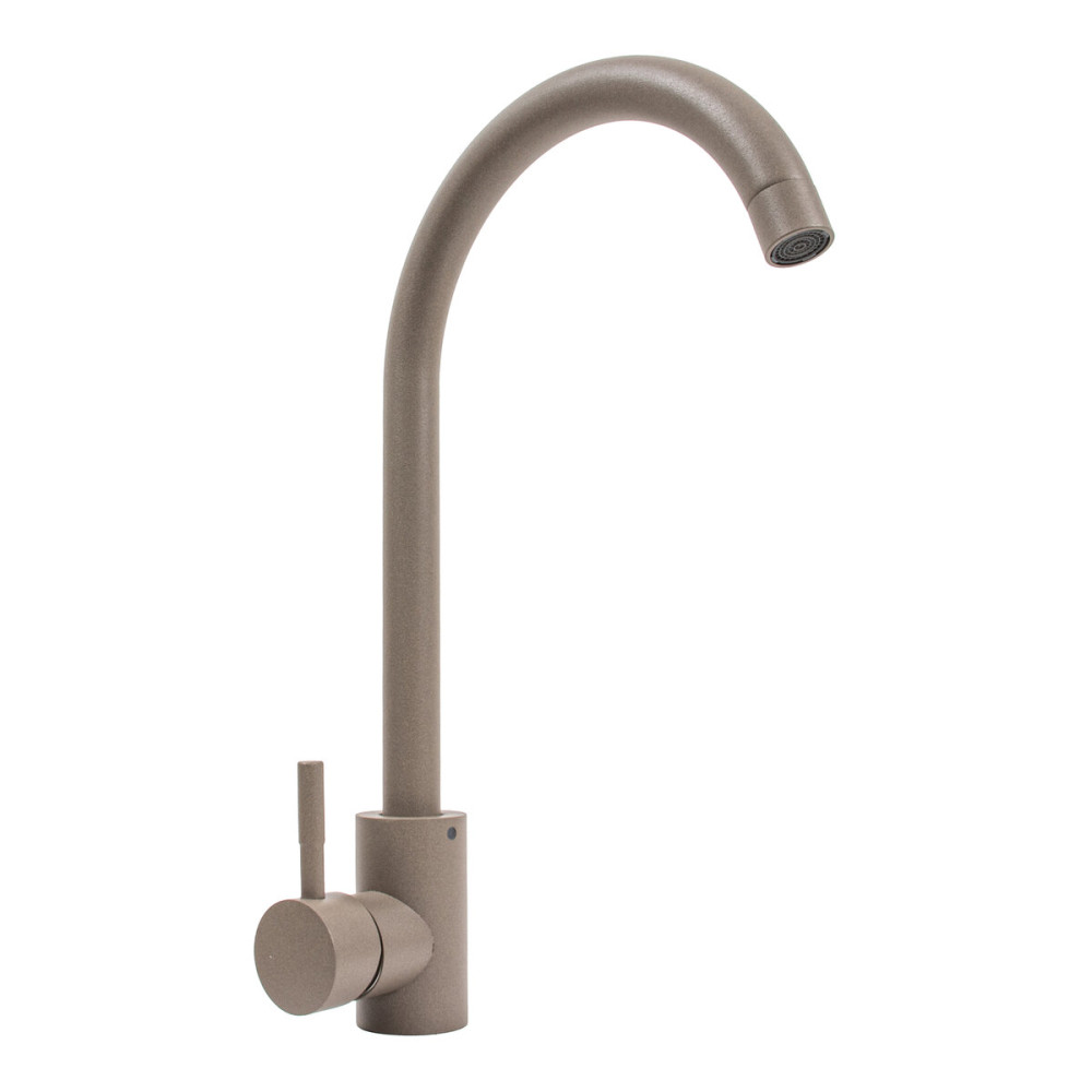 Змішувач кухонний Platinum 56 B NESP (3008 А)Титан відзначається сучасним та стильним дизайном. Він має колір Титан, який додає елегантності та оригінальності вашій кухні. Його висота складає 330 мм, що робить його ідеальним для використання з великими посудинами та каструлями. Довжина виливу становить 200 мм, що забезпечує зручність при наповненні горщиків та митті посуду. Змішувач виготовлений з високоякісної нержавіючої сталі SUS304, що гарантує його тривалий термін служби та стійкість до корозії.