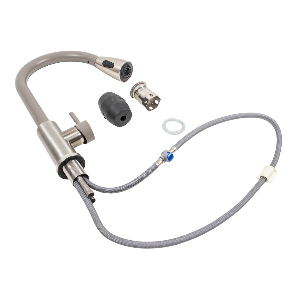 Шланг змішувача висувається до метра, маючи довжину близько 900 мм, що додає зручності та гнучкості під час використання.