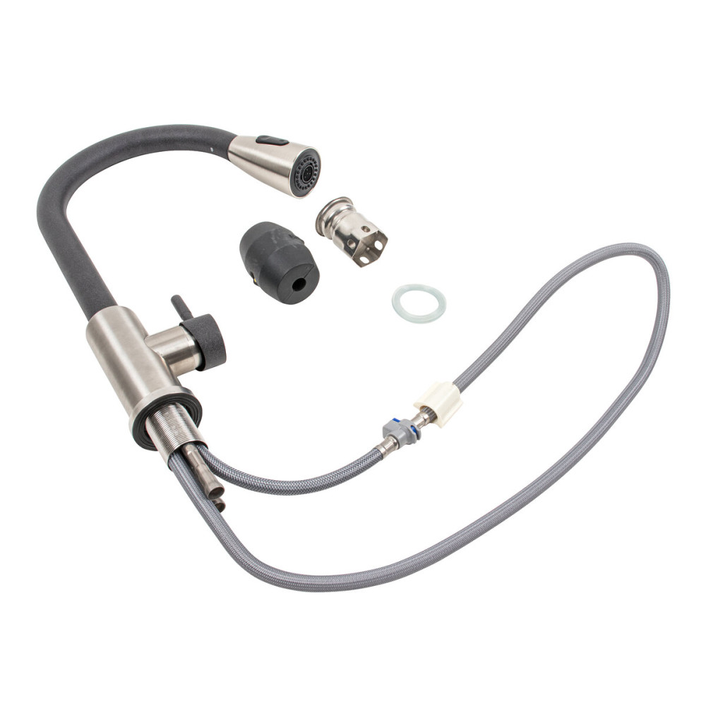Шланг змішувача висувається до метра, маючи довжину близько 900 мм, що додає зручності та гнучкості під час використання.