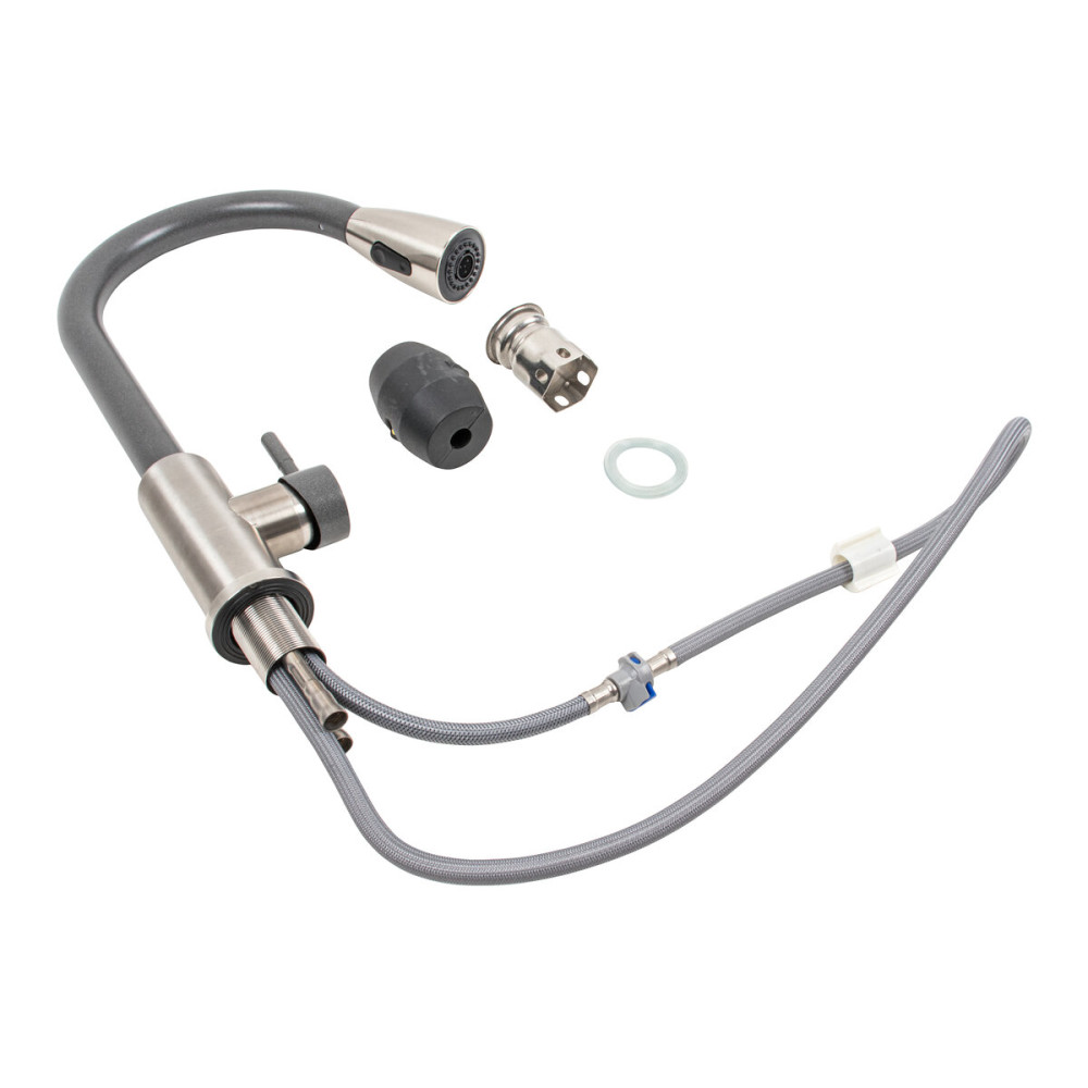 Кухонний змішувач з висувним виливом Platinum KT 8203 добре поєднується з сучасним дизайном кухонних мийок. Висувний вилив полегшує миття посуду та сприяє зменшенню кількості бризок під час користування. Ідеально підходить для мийок з двома чашами.